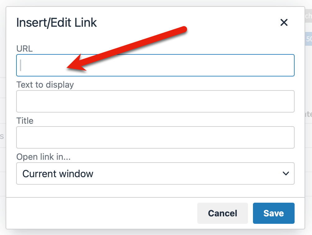 If you're inserting your URL rather than using HTML to add it, it goes here (click the "Insert/Edit Link" option in the Content wysiwyg menu):