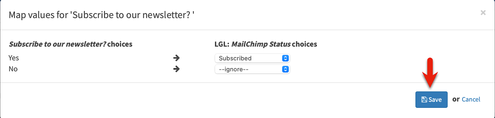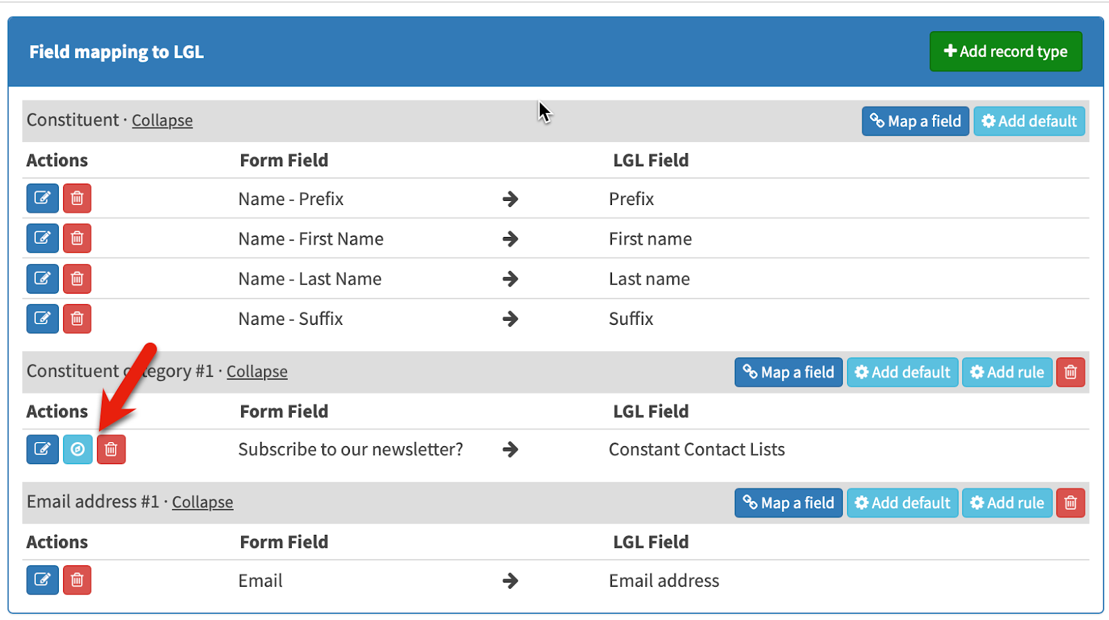 - Map the form so that the email address and subscription status go into the correct LGL fields