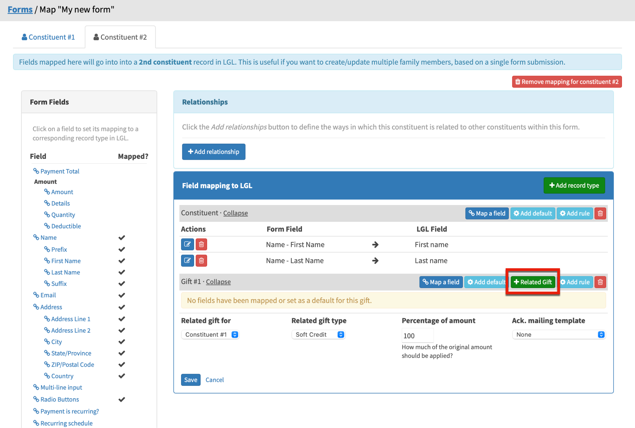 In the gift mapping for the additional constituent, click the “Related Gift” button:
