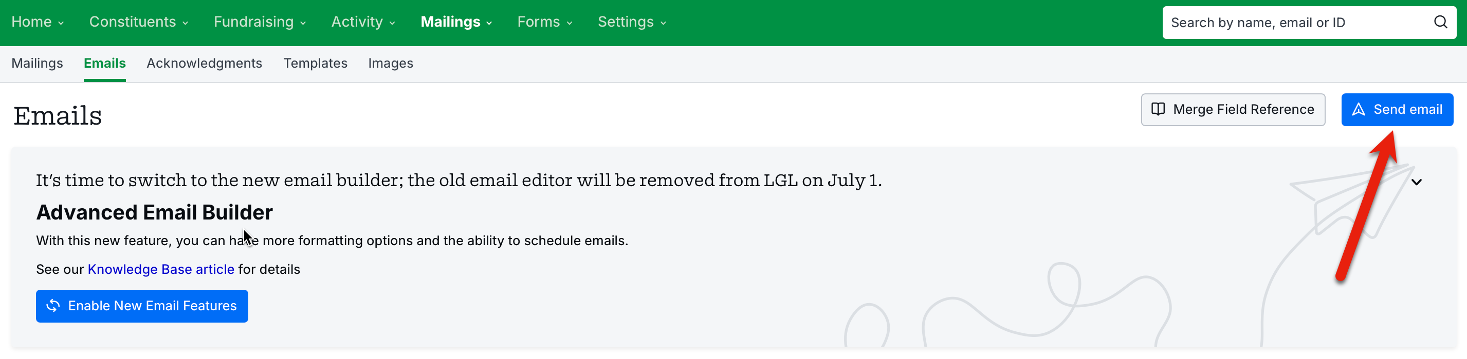 IMPORTANT NOTE: In order to be able to email directly from LGL, you must first enable LGL Email in your account.